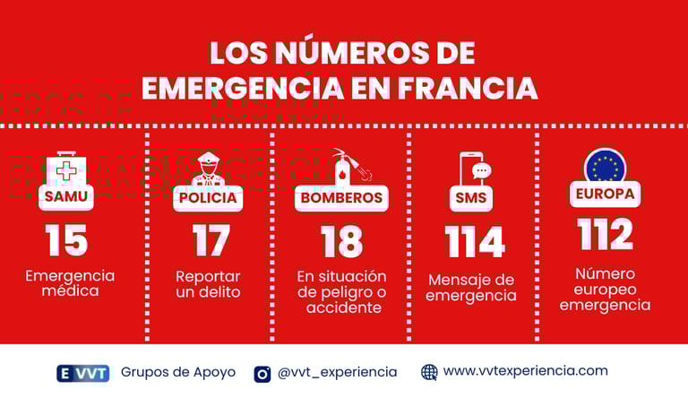 1️⃣4️⃣ Ten a mano los números de emergencia en Francia e identifica los números de contactos y protocolos en casos de emergencias con tu seguro médico de viaje 🚨 - En caso de emergencia médica, llama al 15 para SAMU (Service d'Aide Médicale Urgente). También puedes acudir a la sala de emergencias del hospital más cercano sugerido por tu seguro (service des urgences). Conocer los números de emergencia y el proceso para acceder a la atención es vital (Ver más aquí).